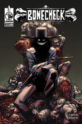 After discovering the truth behind the missing townsfolk/demonic cultists and serving a notably oversized can of whoop-ass, the Midwest Marauder (along with his ol’ pal, Fitz) must rid the scene of incriminating evidence and (most importantly) get paid! Next round is on the Smiling Psychopath and his funny lil’ friend! Get this killer final issue of volume one!