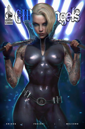 The world of “Guns & Angels” is a labyrinthine underground controlled by secret factions of assassin guilds. This four chapter 00 issue introduces you to four of its major players.